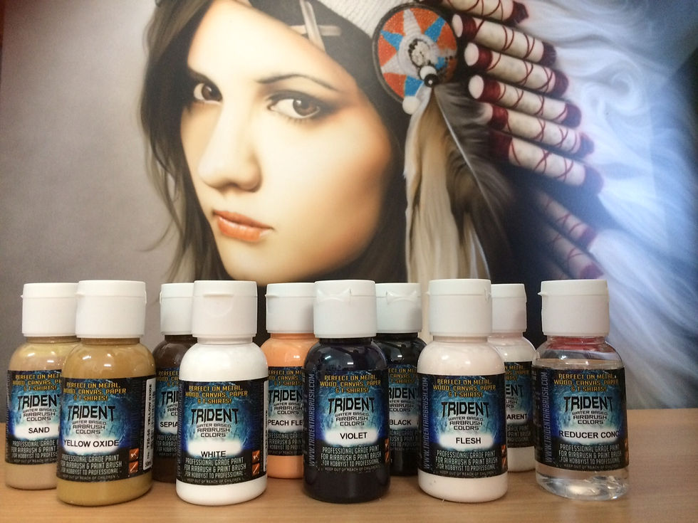 TRIDENT is a revolutionary new water based airbrush paint that provides premium performance and is a joy to paint with. It was designed with the highest expectations, with current standards of other water based paint being unacceptable, TRIDENT was to perform as well as any top performing urethane; and it does!